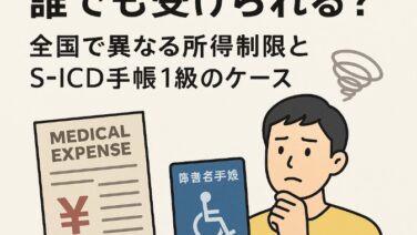 コラム・読み物 重度医療費助成は誰でも受けられる?全国で異なる所得制限とS-ICD手帳1級のケース はじめに重度の障害を抱える方やそのご家族にとって、医療費の負担は大きな課題です。特に、心臓に関わる疾患で「S-ICD(皮下植込み型除細動器)」を植込んだ場合などは、身体障害者手帳1級が交付されることがあります。こうした方々が利用できる可能性... 2025.09.30 コラム・読み物入院・検査生活と制度